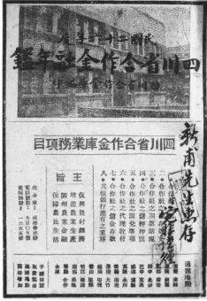 《四川省合作金融年鉴(民国二十七年度)》。该年鉴是全省可查证的首部行业年鉴,也是全省金融行业的首部年鉴。民国二十七年度由四川省合作金库编印。全书共768页,设6大类(论著、四川合作金融概况、四川省合作事业概况、四川省各县社会调查、特产调查、附录),采用篇章节目体例,并有部分表格插入。该书记述内容为民国二十七年(1938)的四川省农村金融合作情况、社会调查情况、特产调查情况等,也是四川首部以年份记述的年鉴。该书编著以编印单位的名义,无任何主编、编辑、校对等人员信息。该年鉴现收藏于北京图书馆。