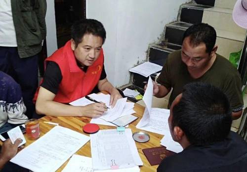 吴志宏(左)核查建档立卡贫困户信息