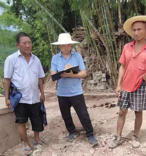 吴志宏(中)查看村内引水项目施工现场