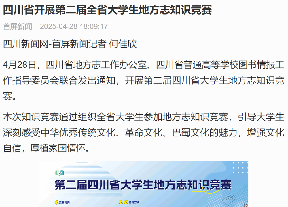 【首屏新闻】四川省开展第二届全省大学生地方志知识竞赛