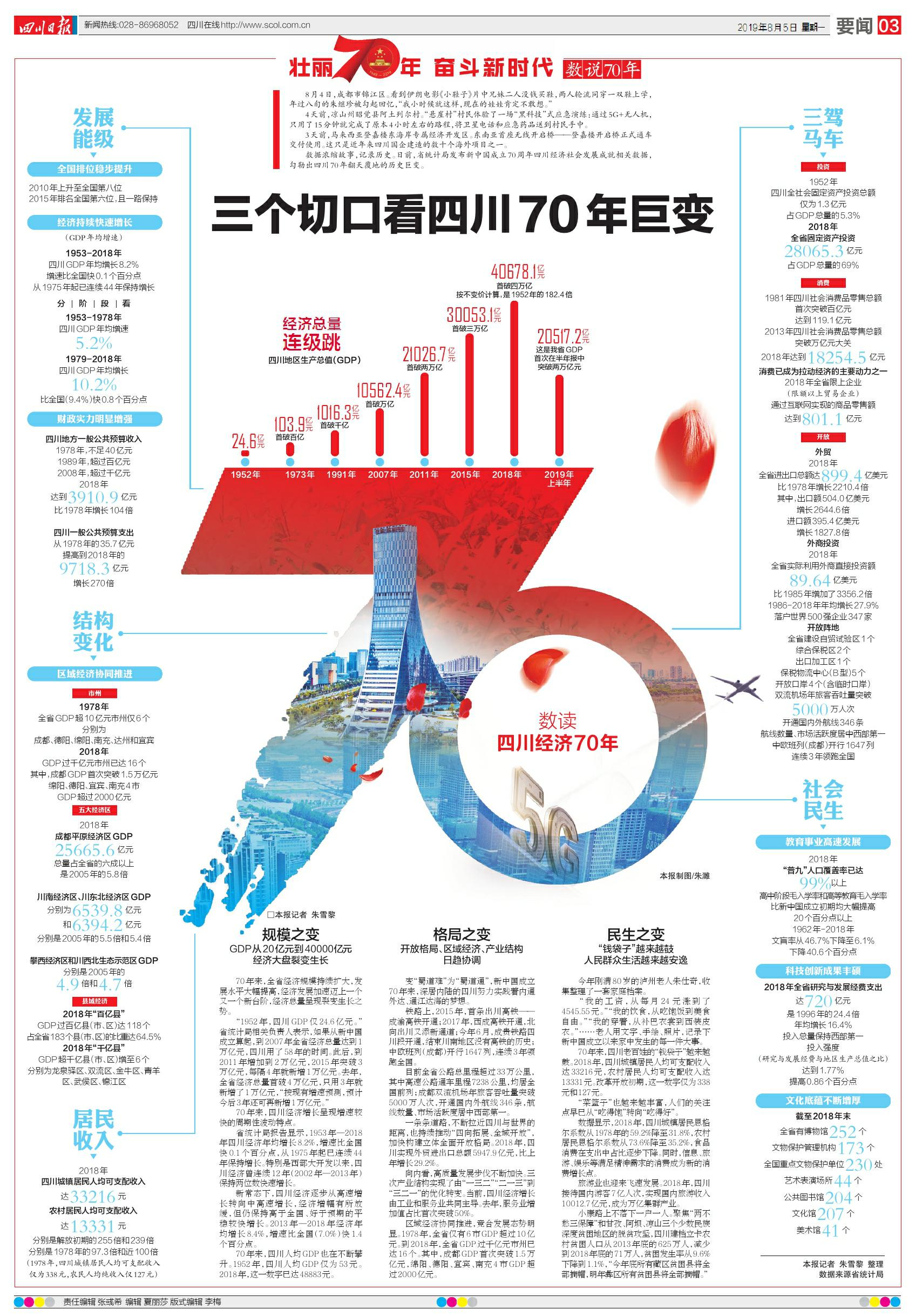 数据浓缩故事,记录历史。日前,省统计局发布新中国成立70周年四川经济社会发展成就相关数据,勾勒出四川70年翻天覆地的历史巨变。