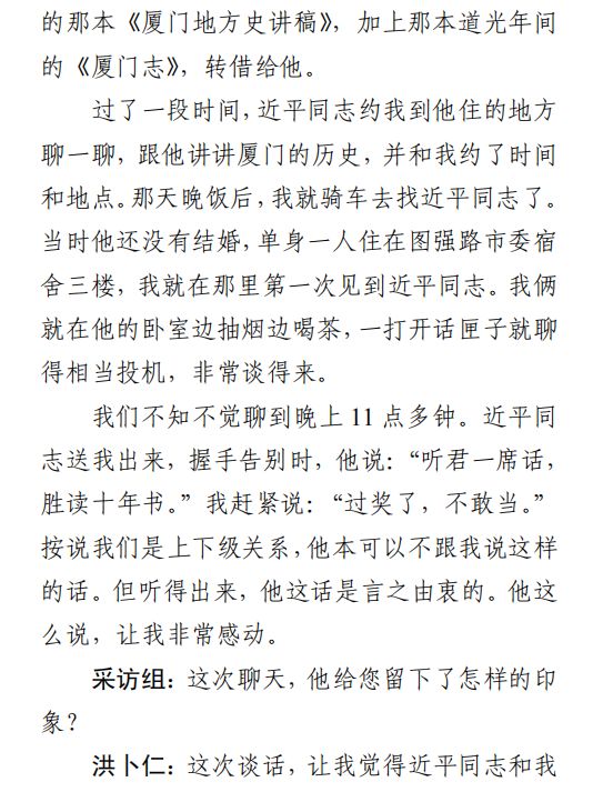 采访对象:洪卜仁,1928年6月生,福建厦门人,民盟成员。新中国成立前任报刊记者、编辑,新中国成立后历任小学校长、中学历史老师。1983年至1992年任厦门市地方志办公室副主任、编审,兼任厦门市社科联副主席、市政协文史委副主任。后任福建省文史研究馆馆员、厦门市政协特邀研究员、厦门市人民政府地方志办公室高级顾问。2019年5月20日因病去世(图片来源:2019年8月2日《学习时报》)
