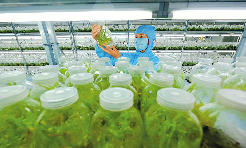 渠县技术人员通过基因组培技术培植出新品种黄花苗,具有更耐旱、抗病害等优点。