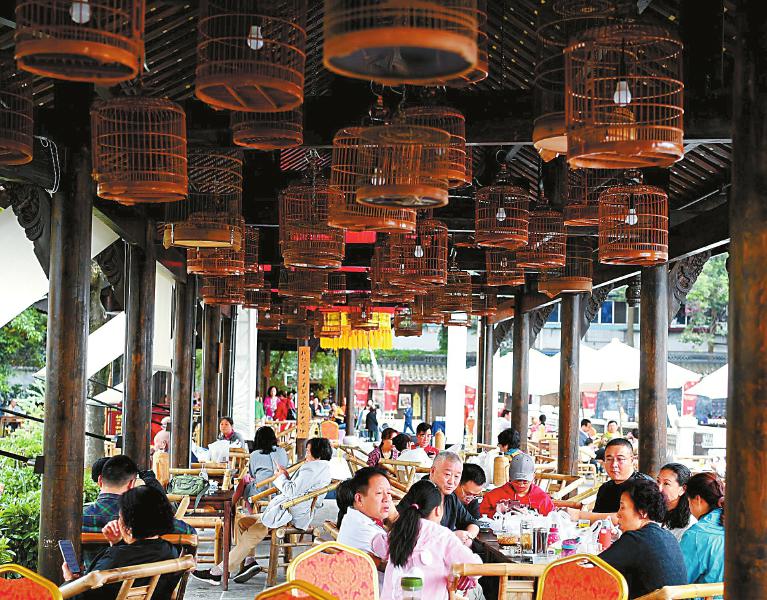 位于成都地铁7号线狮子山站旁的老成都市井生活体验街区“东门市井”,成为成都新晋网红打卡地,国庆期间,吸引了不少市民前来品尝美食、喝茶休闲。 四川日报记者 衡昌辉 摄