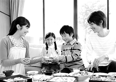 随着日本女性的高学历化和就业人口的增加,能有时间给孩子做丰盛饭菜的家庭也在逐渐减少。日本传统早餐的酱汤、米饭、烤鱼等逐渐被西式快餐的面包和牛奶所代替,午餐大都交给了学校的“给食”(配餐),晚餐从超市买回半成品,甚至从快餐店、便利店买回盒饭凑合的家庭也大有所在。曾作为日本一大特色的“妈妈便当”和“爱妻便当”也是逐年减少,传统的一大家人围坐在一起其乐融融边吃饭边聊天的场景更是越来越难以见到。日本近年来出现的“孤食”“个食”等新概念,正是这种社会现实的真实写照。“孤食”就是指一个人单独吃饭,“个食”就是虽然一家人在一起吃饭,自己吃自己的,家人之间零交流。泡沫经济破灭后,日本经济长时间的不景气使得爸爸的收入减少,大量的家庭主妇也不得不加入到工作大军中来,妈妈的忙碌加剧了“孤食”和“个食”的社会现象,而便利店、便当店、各种快餐行业则迅猛填补了这一空白。虽然可以果腹,但营养均衡自然不能与家庭料理相提并论。最让人担忧的是长时间的“孤食”和“个食”,有可能会影响到孩子的人际交往能力,并成为又一个诱发校园欺凌的因素。