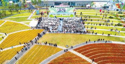 11月2日,第十届中国·四川(彭州)蔬菜博览会在天府蔬香博览园蔬香广场开幕。图为蔬香广场全景。 韩雪梅 乔刚 摄