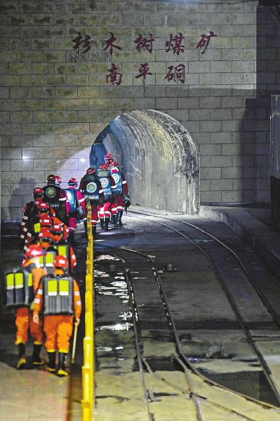 12月17日晚上10点30分左右,救援人员整装出发进入矿井。