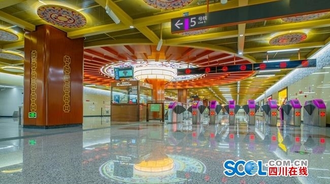 地铁5号线一二期贯通成都南北,北起新都区,南至天府新区,线路全长49.016公里,共设车站41座,其中地下站36座,高架站5座,换乘站13座,车辆段1座,停车场2座。5号线是中西部地区首条采用“8A”车辆编组的地铁线路,大幅提升了5号线运量,对缓解成都南北向的客运压力具有重要意义。线路车站装修以“芙蓉锦绘”为文化主题,普通标准站27座、文化艺术站9座、重点艺术站5座,分别为皇花园站、青羊宫站、抚琴站、锦城大道和二江寺站。