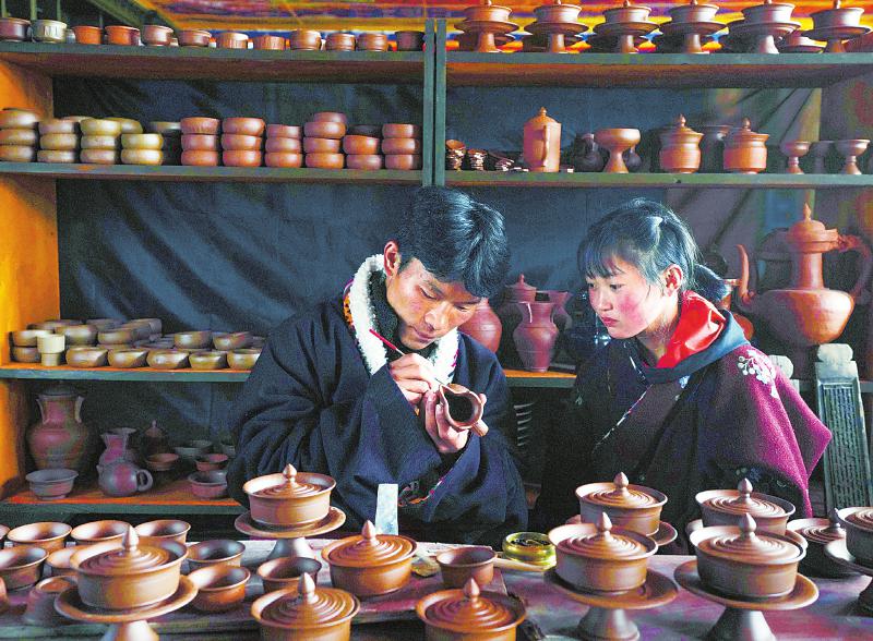 壤塘县近年来大力推动文化扶贫,按照“非遗+扶贫”思路,采取“政府扶持、传承人自主创办”方式,鼓励扶持传承人积极创办传习所,每年投入100万元资金用于非遗传习所建设。目前该县已建立传习所26个,涵盖藏陶、藏香、藏茶、藏药、唐卡、石刻、陶艺等非遗文化项目。如今,该县从事非遗文化生产性保护工作近两千人,很多快被遗忘的民间艺术又重新得到恢复,焕发出新的生命力。本报记者 尹钢 摄影报道
