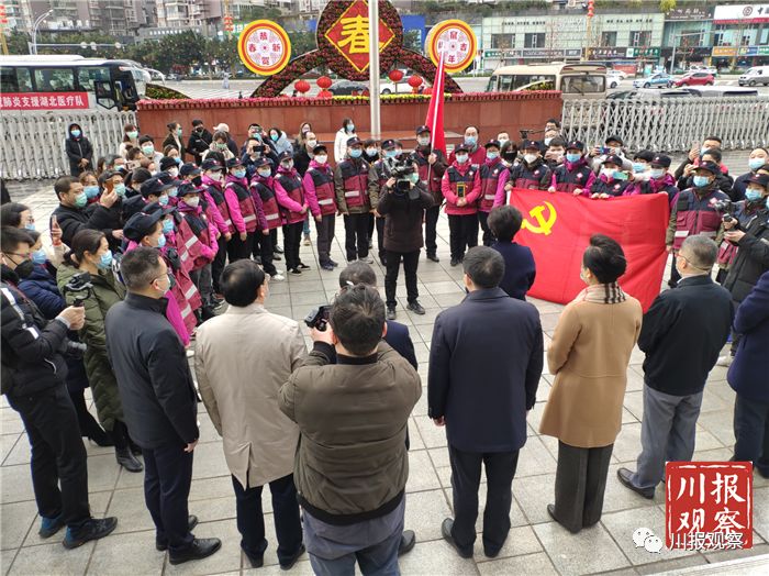 崇州市委书记欧昭,市委副书记、市长尹念红代表市委、市政府为即将奔赴防控最前线的医护人员壮行,共同打赢疫情防控阻击战。