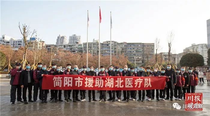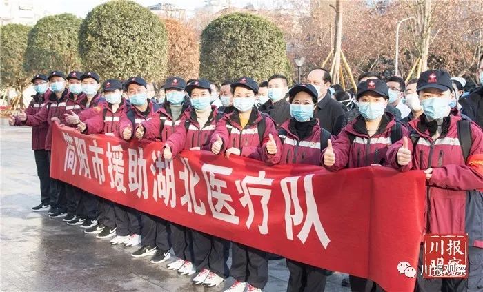欢送仪式上,简阳市委书记赵春淦动情地向队员们说,大家这次出征,是一次壮美的逆行,承载着湖北疫区人民对你们的期盼,承载着广大医务工作者的崇高使命和情怀担当,承载着家乡父老和亲人亲属对你们的牵挂。简阳市委市政府和全市150万人民永远是你们的坚强后盾,期盼你们完成使命平安回家。