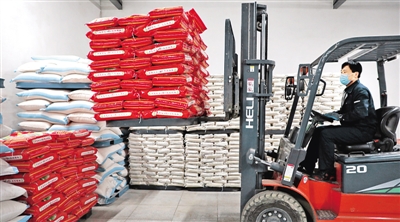 复工复产以来,辽宁省鞍山市鞍山银行、中国农业发展银行鞍山分行等单位通过一系列“春风行动”,帮助鞍山市多家农业企业协调解决在生产和资金等方面遇到的问题,为农业企业复工复产提供金融支持。图为该市银珠米业有限公司生产车间,工作人员在搬运大米。新华社发
