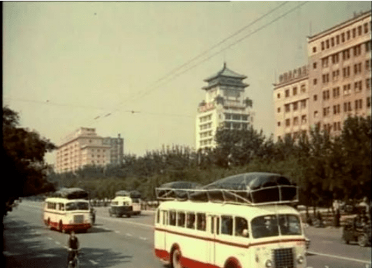 1961年,在缺乏汽油的年代,行驶在北京长安街上的“大气包”公共汽车