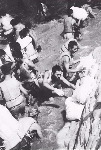 面对特大洪水,抗洪军民顽强拼搏,严防死守,顶住了一次又一次洪峰冲击,确保了沿江重要城市、交通干线以及人民群众生命财产安全。图为抗洪官兵在封堵决口