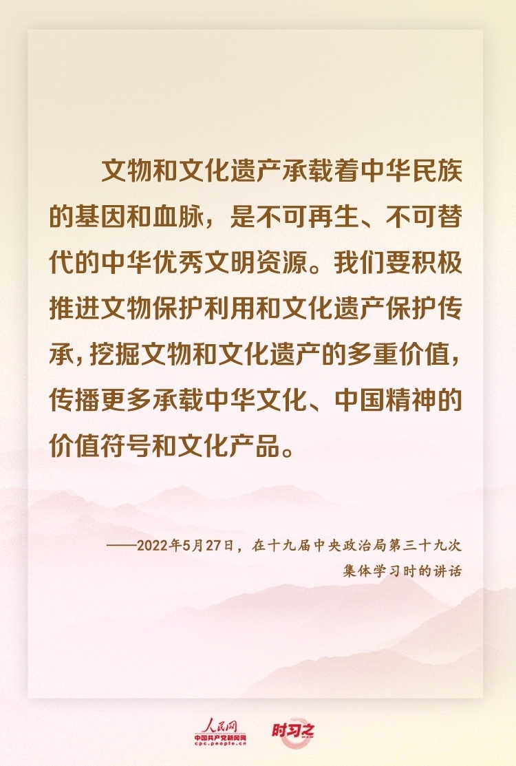 “做优秀传统文化传承者”——留住历史根脉、传承中华文明,一直是习近平总书记的所思所行。登古城、寻文脉、看非遗……2022年以来,他频频深入地方考察调研,对于守护中华文化,他始终饱含深情、念念不忘。