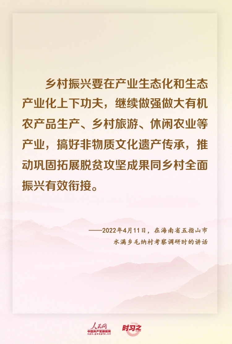 4月11日下午,习近平总书记到海南岛中南部的五指山市考察调研,在水满乡毛纳村,沿长廊察看黎族特色农产品和黎锦、藤编等非物质文化遗产展示。
