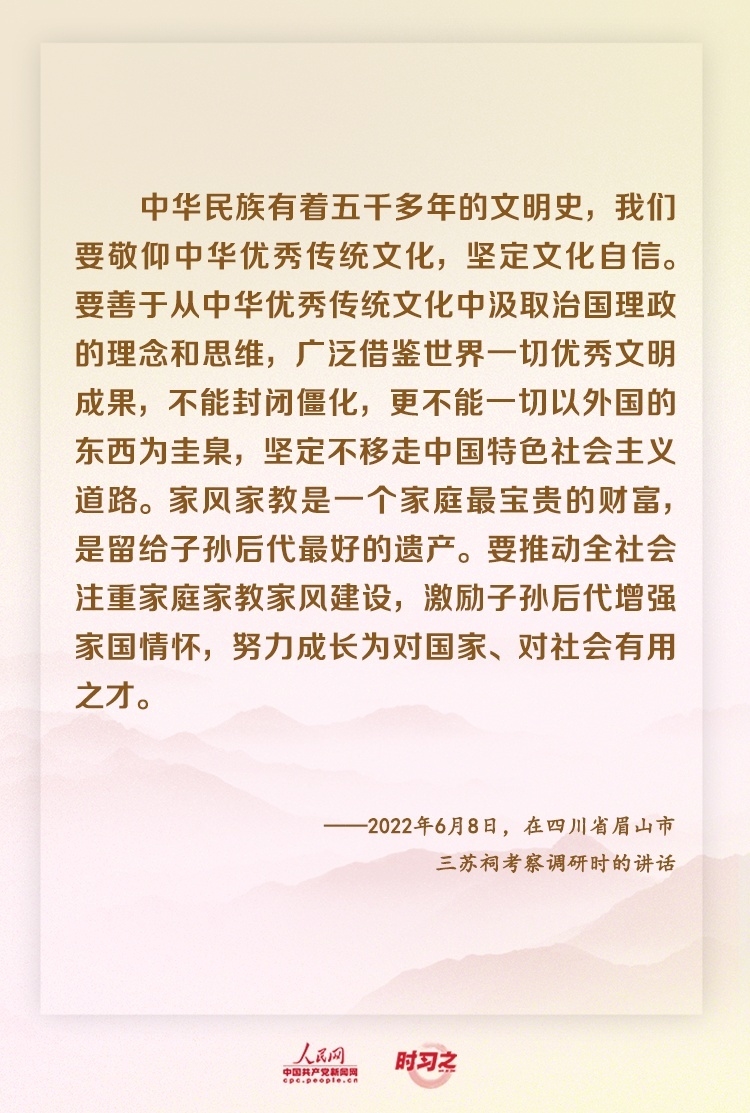 “一滴水可以见太阳,一个三苏祠可以看出我们中华文化的博大精深。我们说要坚定文化自信,中国有‘三苏’,这就是一个重要例证。”习近平总书记对此深有感触。