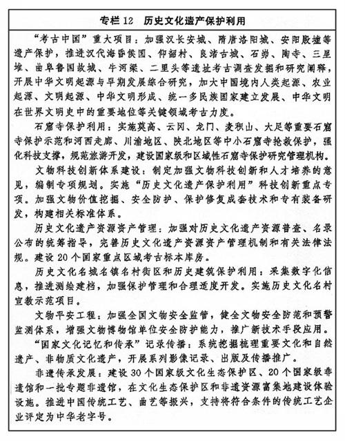 树牢保护历史文化遗产责任重大的观念,增强对历史文物的敬畏之心。全面加强考古工作,健全“先考古、后出让”制度。加强文物科技创新。统筹指导各类文物资源普查和名录公布,编制文物保护单位保护规划等专项规划,纳入国土空间规划实施。推进世界文化遗产申报、保护管理和展示宣传。加强不可移动文物和馆藏文物保护修复。加大流失文物追索返还工作力度。推进文物合理利用,建设国家考古遗址公园、文物保护利用示范区、文化遗产廊道,推介以文物资源为载体的国家文化地标和中华文明标识体系。实施中华文物全媒体传播计划。健全文物安全长效机制,严厉打击文物犯罪。