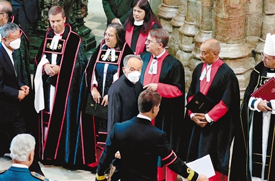应英国政府邀请,国家主席习近平特别代表、国家副主席王岐山出席伊丽莎白二世女王葬礼。这是当地时间9月19日上午,王岐山与各国元首、王室成员、政府代表共同出席在威斯敏斯特大教堂举行的伊丽莎白二世女王国葬仪式。 |