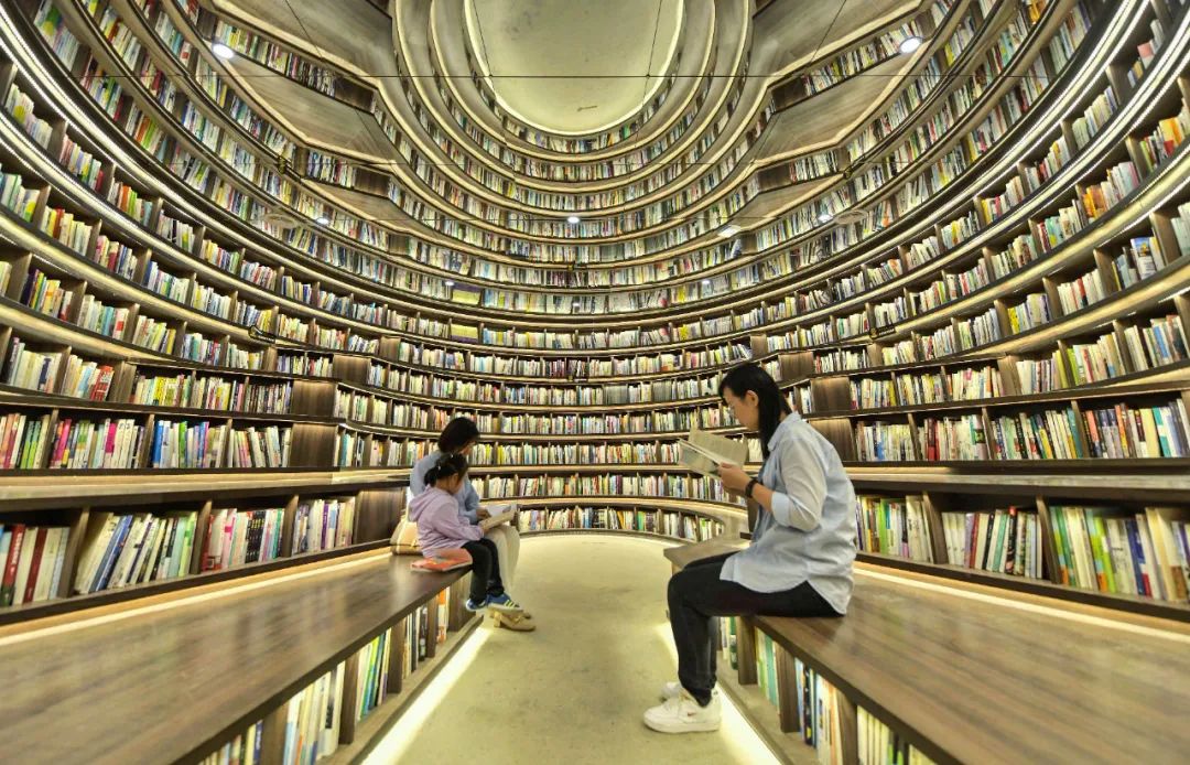 市民在山东省日照市海边城市书房阅读书籍 (范长国 摄)