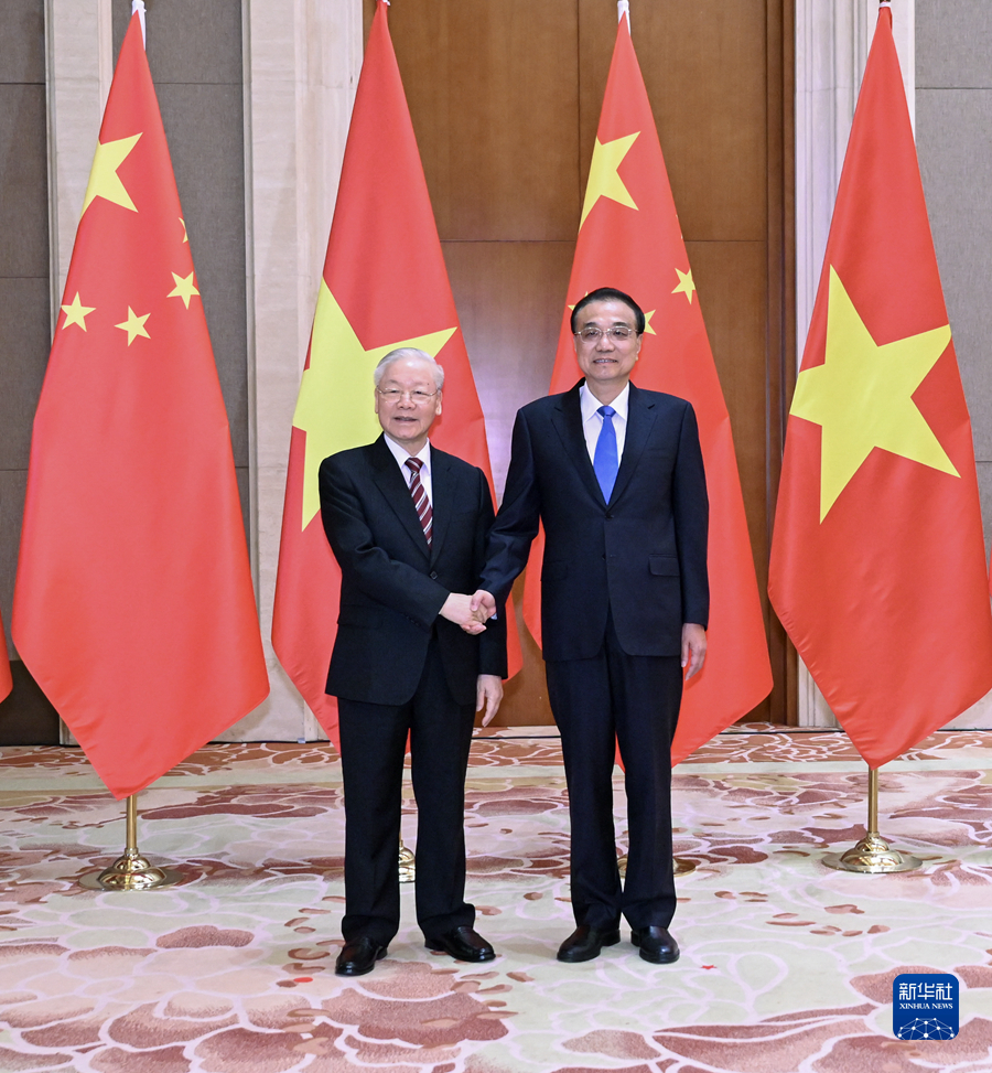 李克强欢迎阮富仲访华,他表示,中越是全面战略合作伙伴,拥有广泛共同利益。昨天,习近平总书记同你举行了亲切友好、富有成果的会谈,达成广泛共识,并全面介绍了中共二十大的主要情况,表明中方愿同各方携手共促世界和平稳定与发展繁荣。中方高度重视发展同越南的关系。中越互为友好近邻,双方要从战略高度和长远角度出发,保持高层交往,加强交流互鉴,深化发展战略对接,以中越关系的稳定性应对当前世界的不稳定、不确定性。