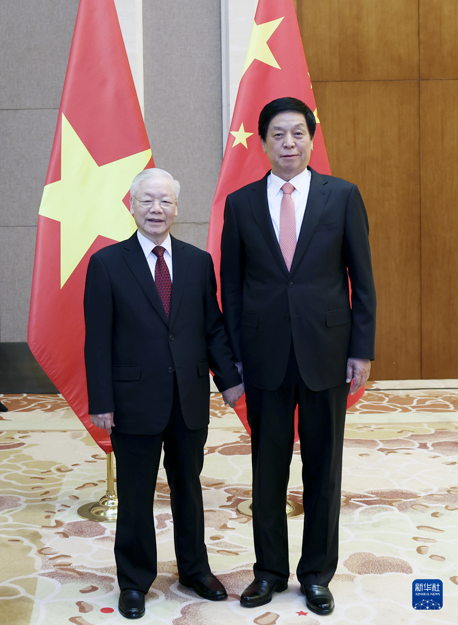 栗战书在会见时表示,习近平总书记昨天同阮富仲总书记同志成功会晤,达成一系列重要共识,在两国和世界上产生重要影响,为两国社会主义事业注入了强劲动力。栗战书介绍了中共二十大的重大政治成果和重要意义,表示中国共产党和中国人民正热烈响应二十大号召,在以习近平同志为核心的中共中央领导下,信心百倍朝着以中国式现代化全面推进中华民族伟大复兴的目标而团结奋斗。中国全国人大愿进一步密切同越南国会的交流合作,为深化新时代中越全面战略合作伙伴关系贡献力量。