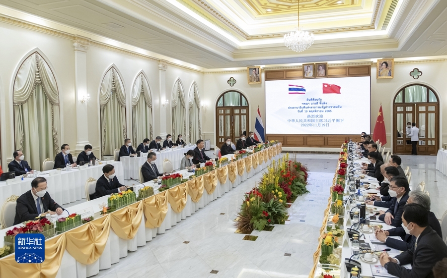 习近平指出,双方要像走亲戚一样常来往、多走动,在涉及彼此核心利益和重大关切问题上继续相互坚定支持。双方要落实好未来5年《中泰战略性合作共同行动计划》,统筹推动各领域合作取得更多成果。要有效对接各自发展战略,推动高质量共建“一带一路”不断取得新成效。双方要加强投资、贸易、旅游、基础设施、产业园等传统领域合作,同时不断培育新增长点,推动数字经济、新能源汽车、科技创新等新领域合作取得积极进展。要加快中老泰三方铁路合作,积极推进“中老泰联通发展构想”,重点加强基础设施“硬联通”,做好物流通关“软联通”,扩大泰国优质农副产品输华。中方愿同包括泰国在内的各方一道,高质量实施《区域全面经济伙伴关系协定》,让这一全球最大自贸区安排释放更大红利。加大打击跨境犯罪,深化追逃追赃合作。加强教育、医疗、扶贫等民生领域合作,通过多种方式交流减贫发展经验,推动两国扶贫合作走深走实,办成、办好一批贴近群众、服务基层的实事。要加强青年交流,使两国人民心更近、情更深,丰富中泰命运共同体的人文内涵。
