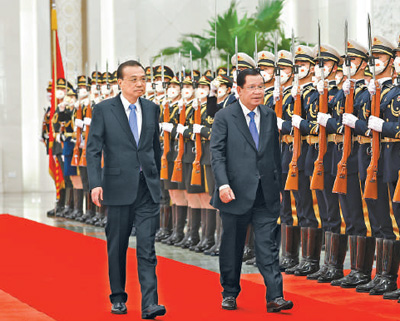 会谈前,李克强在人民大会堂北大厅为洪森举行欢迎仪式。会谈后,李克强为洪森举行欢迎宴会。