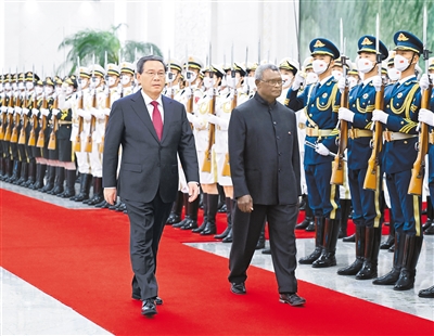 李强表示,中所建交近四年来,双边关系迅速发展、硕果累累,两国已成为彼此值得信赖的好朋友、可以依靠的好兄弟。这充分表明中所建交是顺应时代潮流的正确选择。两国决定建立新时代相互尊重、共同发展的全面战略伙伴关系。站在新的历史起点上,中方愿同所方深化政治互信,继续坚定支持彼此核心利益和重大关切,扩大各领域各层级对话交流,加强互利合作,推动两国关系提质升级。