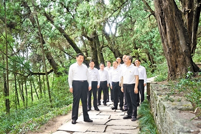 7月25日至27日,中共中央总书记、国家主席、中央军委主席习近平在四川考察。这是25日下午,习近平在广元市剑阁县翠云廊考察。 |