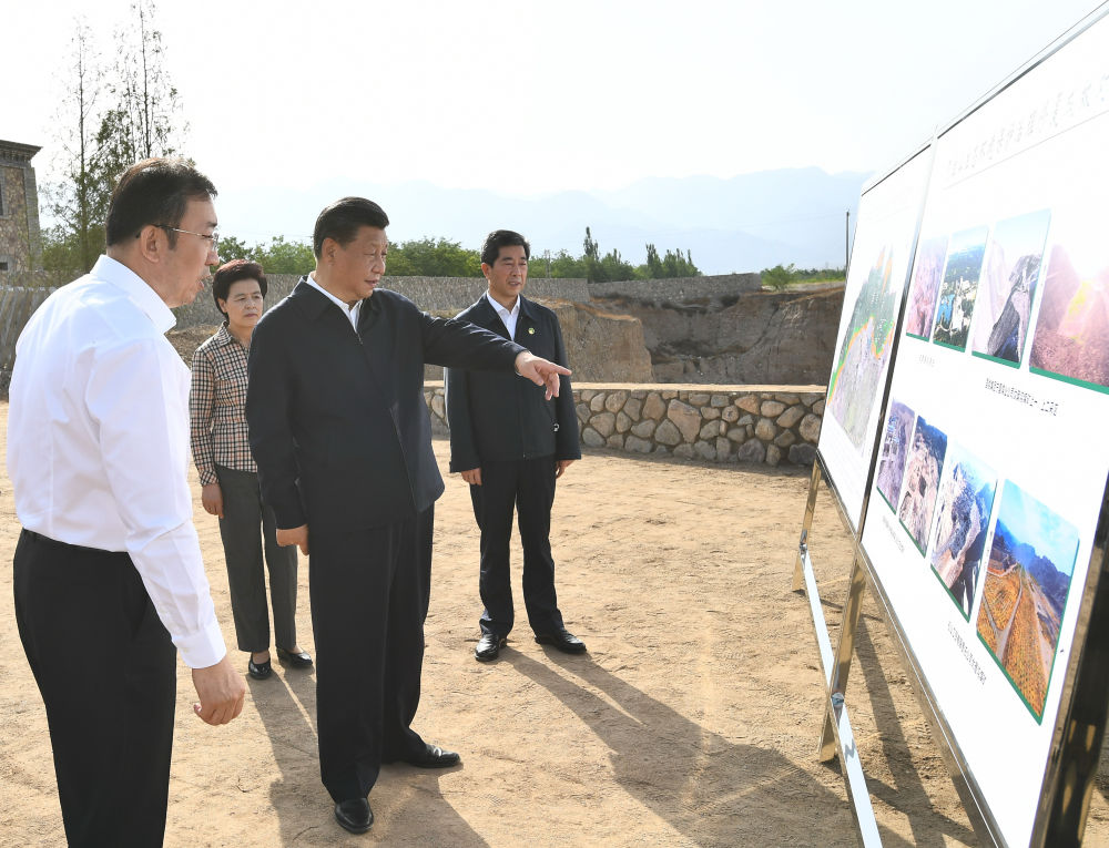 2020年6月9日下午,习近平在宁夏银川市西夏区贺兰山东麓,听取贺兰山生态保护和环境综合整治情况汇报。