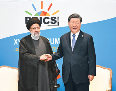 本报约翰内斯堡8月24日电 (记者任皓宇、杨一)当地时间8月24日上午,国家主席习近平在约翰内斯堡出席金砖国家领导人会晤期间会见伊朗总统莱希。