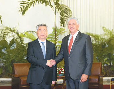 9月16日至18日,应古巴共产党邀请,中共中央政治局常委、中央纪委书记李希对古巴进行正式友好访问。这是当地时间9月16日,李希在哈瓦那会见古共中央第一书记、古巴国家主席迪亚斯—卡内尔。 |
