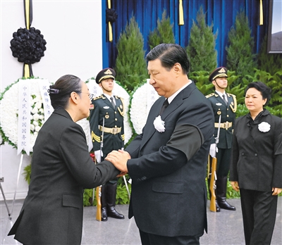 11月2日,李克强同志遗体在北京八宝山革命公墓火化。习近平、李强、赵乐际、王沪宁、蔡奇、丁薛祥、李希、韩正等前往八宝山送别,胡锦涛送花圈表示哀悼。这是习近平与李克强亲属握手,表示深切慰问。 |