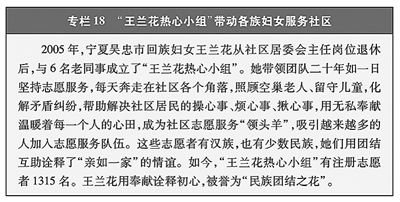 踊跃参加志愿服务等社会公益事业。重视引导支持志愿服务、社会组织等健康发展,广大妇女积极参与。2024年全国有2400万名注册巾帼志愿者和35万支巾帼志愿服务队,开展巾帼志愿服务活动近百万次,服务领域覆盖联合国2030年可持续发展议程17个目标领域,在支持国家战略、保障改善民生、加强社会治理等方面发挥重要作用。妇女参与社会组织人数增加,2023年社会组织从业人员、负责人中的妇女比例分别为42.3%、26.3%,比2012年分别提高13.3个、4.9个百分点。(见专栏18)