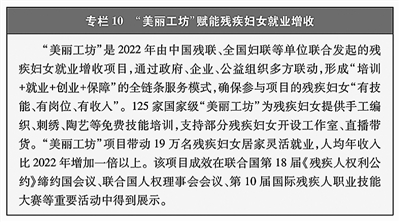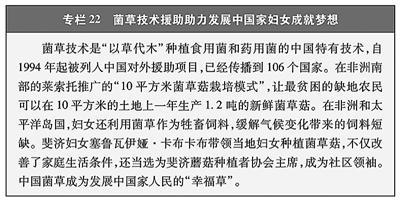 助力“南南合作”妇女减贫和发展。支持发展中国家改善妇女生存发展环境,实施100个“妇幼健康工程”、100个“快乐校园工程”,推出住房、乡村道路及技能培训等赋能妇女和女童的“小而美”民生项目。利用全球发展和南南合作基金,在20余个国家实施超4000万美元的妇女领域项目。澜湄合作专项基金投入1200万元,支持实施妇女发展项目。菌草技术通过援外培训和技术援助等方式,帮助106个国家妇女就业。(见专栏22)