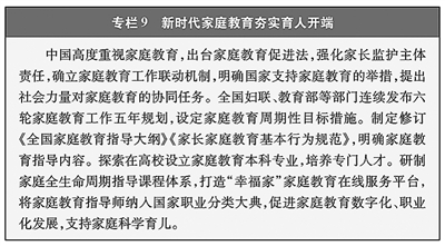 相关领域专项规划回应妇女发展现实需求。“健康中国2030”规划纲要、教育强国建设规划纲要,以及“十四五”就业促进规划、“十四五”民政事业发展规划等民生领域专项规划中,专门就提高妇幼健康水平、保障妇女平等受教育权利、支持妇女就业创业和职业发展、健全农村留守妇女关爱服务体系等提出政策举措。国家中长期人才发展规划纲要对促进人才性别结构趋于合理、加强女性人才培养选拔等作出安排,全民科学素质行动规划纲要对实施农村妇女素质提升计划等作出部署。四期国家人权行动计划均设立“妇女权益”专节,以专门措施保障妇女人身、财产、教育、就业、健康等各项权益。