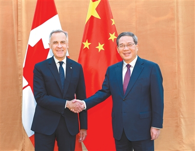 本报纽约9月23日电 (记者王迪、李志伟)当地时间9月23日,国务院总理李强在纽约会见加拿大总理卡尼。