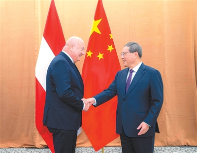 李强表示,中奥建交以来,始终相互尊重、平等相待,两国关系经受住了国际风云变幻考验,总体保持平稳发展。近年来,在习近平主席同范德贝伦总统的战略引领下,中奥关系的内涵不断丰富,已升级为友好战略伙伴关系,两国各领域合作持续推进,为双方都带来了实实在在的利益。中方愿同奥方以明年两国建交55周年为契机,密切高层交往,巩固政治互信,深化互利合作,推动取得更多务实成果。希望奥方恪守一个中国原则,筑牢双边关系政治基础。
