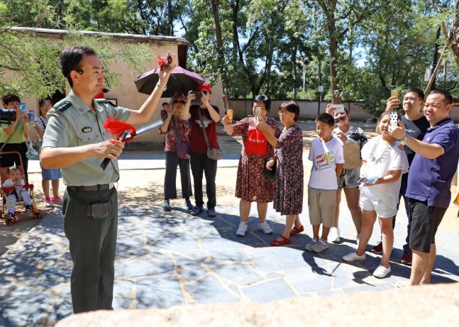 在西柏坡旧址,讲解员韩向飞为游客进行讲解(2019年8月30日摄)。新华社记者杨世尧摄
