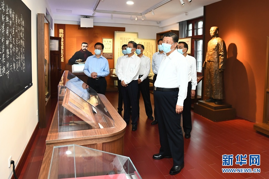 25日下午,习近平带领中央政治局同志来到北大红楼,参观“光辉伟业 红色序章——北大红楼与中国共产党早期北京革命活动主题展”,重温李大钊、陈独秀等开展革命活动、推动马克思主义在中国早期传播、酝酿和筹建中国共产党等革命历史。展厅内,一张张图片、一件件文物,全面展现了那个时期的光辉历史。习近平不时停下脚步,询问相关细节。他指出,北大是新文化运动的中心和五四运动的策源地,最早在我国传播马克思主义思想,也是我们党在北京早期革命活动的历史见证地,在建党过程中具有重要地位。要加强红色资源保护和利用,尊重历史事实,准确评价历史,正确学史用史。