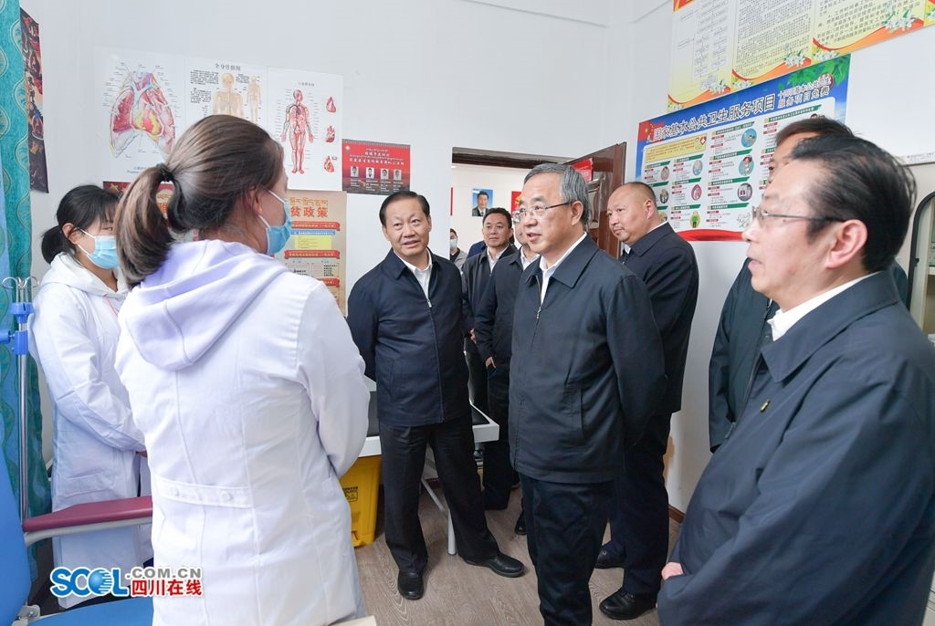 9月17日,中共中央政治局委员、国务院副总理胡春华到炉霍县雅德乡交纳村调研,在村卫生室了解乡村医疗体系建设和巩固拓展健康扶贫工作成果工作情况。四川在线记者 欧阳杰 摄