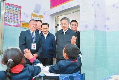 9月16日,中共中央政治局委员、国务院副总理胡春华到甘孜县甘孜镇边远牧区育才学校调研,了解巩固拓展教育脱贫攻坚成果等情况。 四川日报全媒体记者 欧阳杰 摄