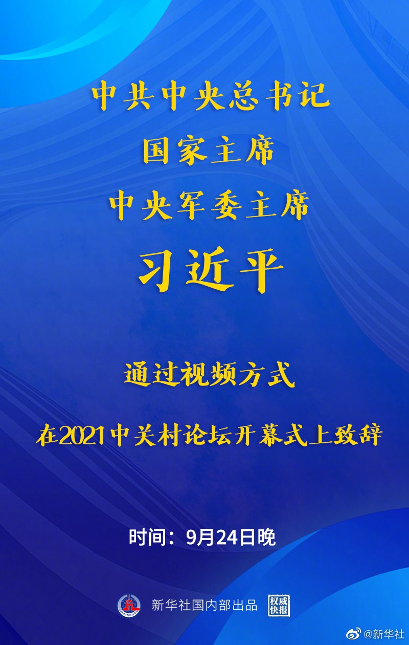 权威快报 | 习近平以视频方式在2021中关村论坛开幕式上致辞 来源:人民网 发布时间:2021-09-25 12:00:11 浏览次数: 次 【字体:小 大】 2021中关村论坛开幕式于9月24日晚在北京举行。中共中央总书记、国家主席、中央军委主席习近平通过视频方式在开幕式上致辞。 来源: 人民网 分享到: 关闭本页 【打印正文】