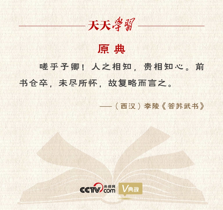 信中李陵为自己当年投降匈奴的行为进行辩白,并对苏武发出了“人之相知,贵相知心”的慨叹,认为人与人之间的相互理解,最可贵的是彼此心灵相通。