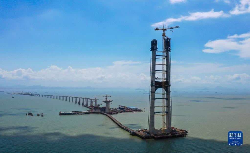 由中交二航局承建的深中通道伶仃洋大桥东索塔(7月1日摄)。新华社记者 刘大伟 摄