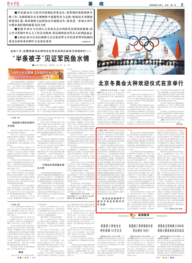 习主席深刻指出,每一代人有每一代人的长征路,每一代人都要走好自己的长征路。今年是红军长征胜利85周年,我们要铭记红军丰功伟绩,弘扬伟大长征精神,不忘初心、继续前进,走好新时代长征路。立足已经全面建成小康社会的历史节点,我们这一代人的长征,就是要实现第二个百年奋斗目标、实现中华民族伟大复兴的中国梦。对我们新时代革命军人来讲,就是要实现党在新时代的强军目标、全面建成世界一流军队。我们要以史为鉴、开创未来,在全面建设社会主义现代化国家新征程上继续担当历史使命,掌握历史主动,不断把强国复兴、强军兴军的历史伟业推向前进。