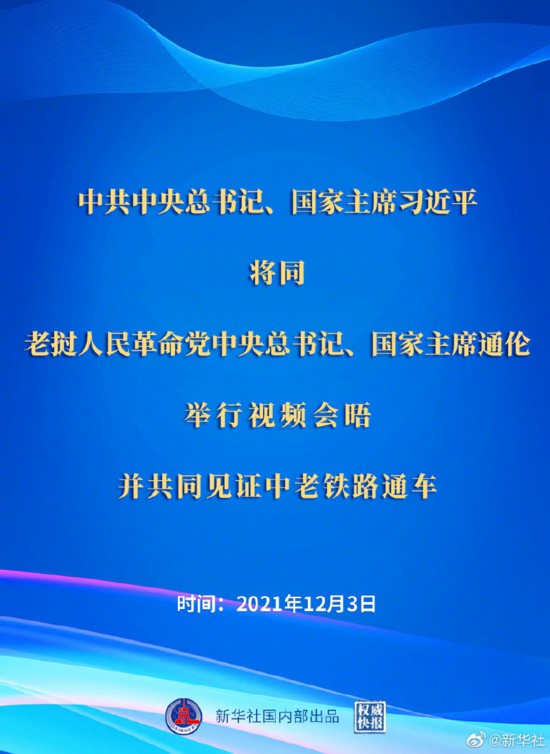 习近平将同老挝党中央总书记、国家主席通伦举行视频会晤并共同见证中老铁路通车 来源:人民网 发布时间:2021-12-01 16:00:11 浏览次数: 次 【字体:小 大】 新华社北京12月1日电 外交部发言人华春莹1日宣布:中共中央总书记、国家主席习近平将于12月3日同老挝人民革命党中央总书记、国家主席通伦举行视频会晤,并以视频连线形式共同见证中老铁路通车。 来源: 人民网 分享到: 关闭本页 【打印正文】