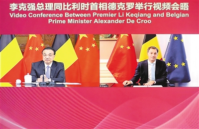 12月7日下午,国务院总理李克强在北京中南海紫光阁同比利时首相德克罗举行视频会晤。 |