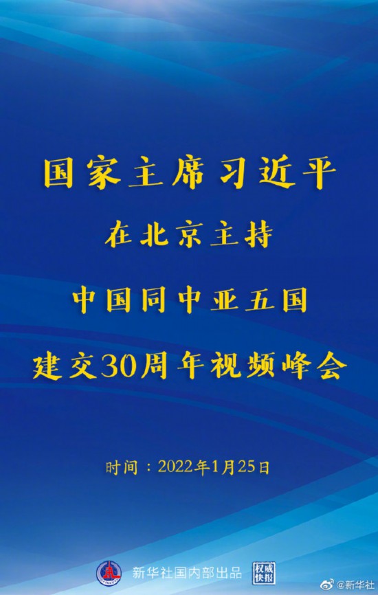 习近平主持中国同中亚五国建交30周年视频峰会 来源:人民网 发布时间:2022-01-25 20:00:11 浏览次数: 次 【字体:小 大】 1月25日下午,国家主席习近平在北京主持中国同中亚五国建交30周年视频峰会并发表重要讲话。 来源: 人民网 分享到: 关闭本页 【打印正文】